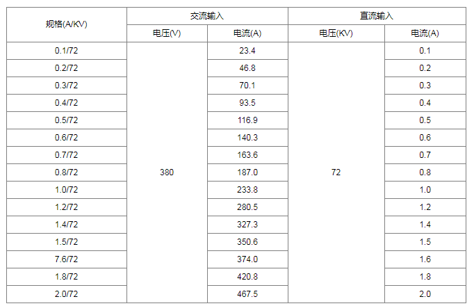 靜電除塵整流變壓器技能數據